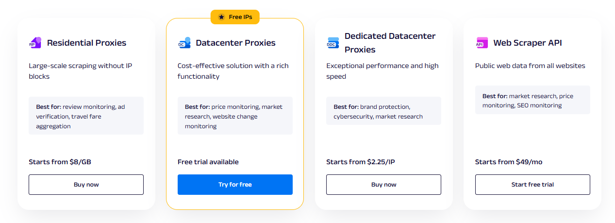At first glance, comparing Bright Data and Oxylabs to GetRealPrice might seem unusual. The first two are proxy infrastructure providers; the third is a specialized e-commerce solution. But here's why this comparison makes sense: all three help businesses gain competitive intelligence from the web. The difference lies in how they approach the problem.
