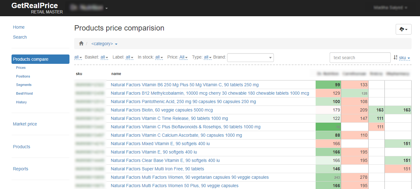 Package Size Normalization: When products come in different quantities, the platform applies price multiplicators for fair comparisons. If you sell 750 vitamin pills and a competitor sells 800, the system recalculates prices to enable direct comparison.